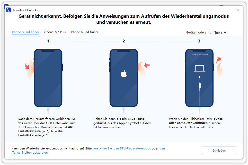 Versetzen Sie das iPhone in den Wiederherstellungsmodus: