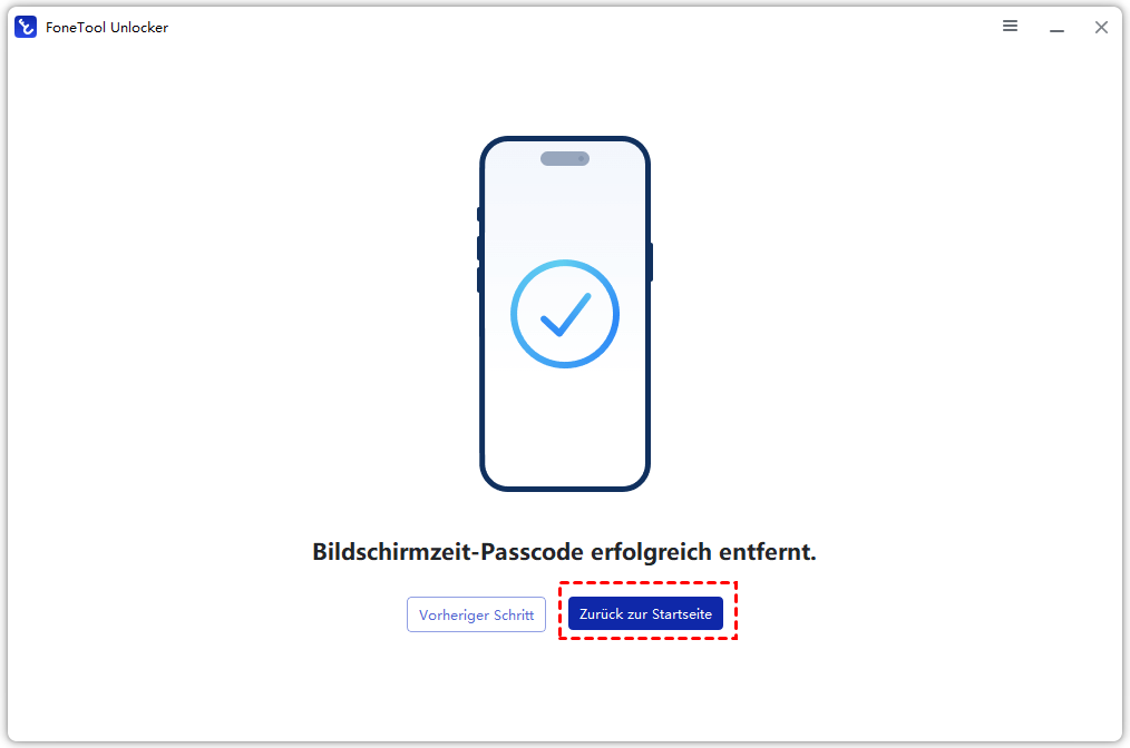 5. Klicken Sie nach dem Entfernen auf „Zurück zur Startseite“, um Ihre Bildschirmzeiteinstellungen zurückzusetzen oder andere Geräteeinstellungen neu zu konfigurieren.