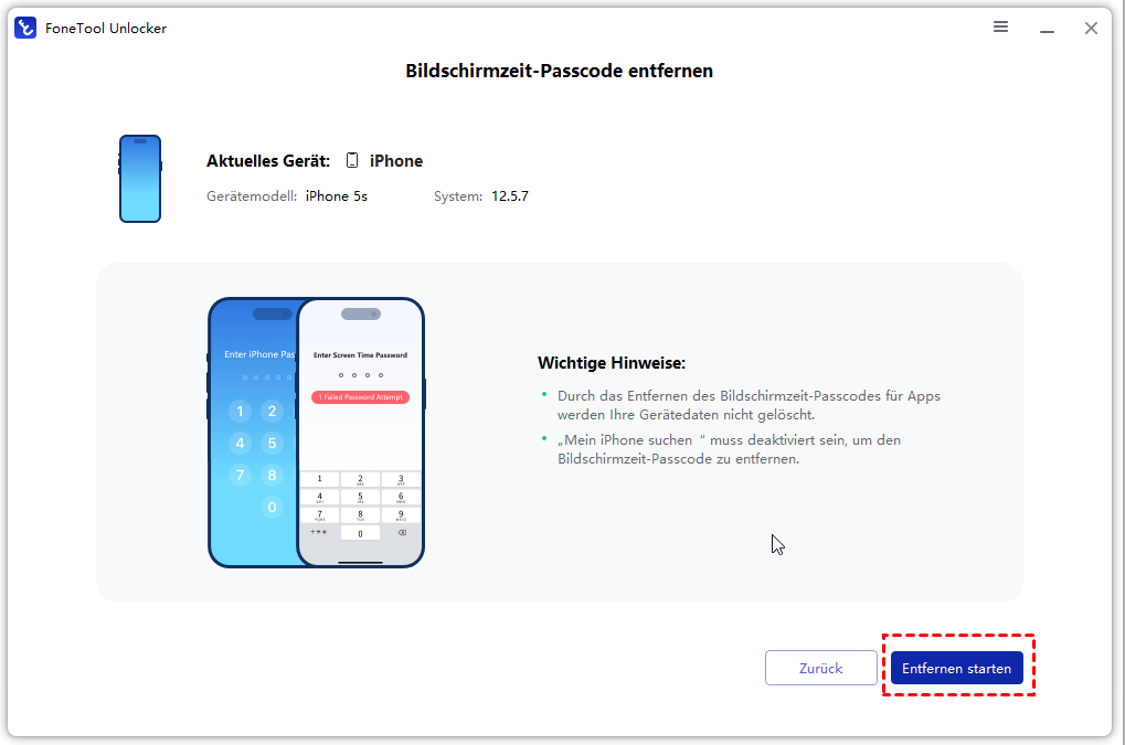 FoneTool Unlocker - 1-Klick-iPhone-Entsperrsoftware
