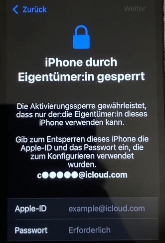 - Zurückgesetztes iPhone mit aktivierter „Mein iPhone suchen“-Funktion: Selbst nach einem Zurücksetzen bleibt die Aktivierungssperre bestehen.
