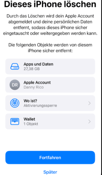 Bei Verwendung dieser Lösung werden alle auf Ihrem iPhone installierten Inhalte und Einstellungen gelöscht.