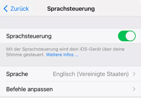 Schritt 2. Tippen Sie auf „Sprachsteuerung“ und dann aktivieren „Sprachsteuerung“.