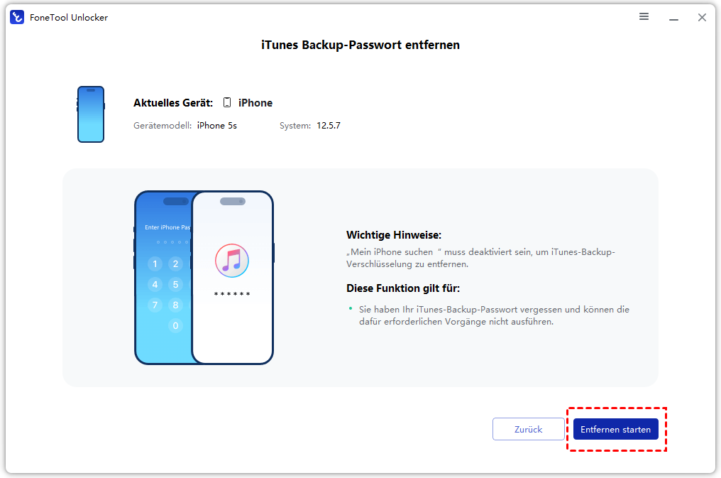 FoneTool Unlocker - 1-Klick-iPhone-Entsperrsoftware