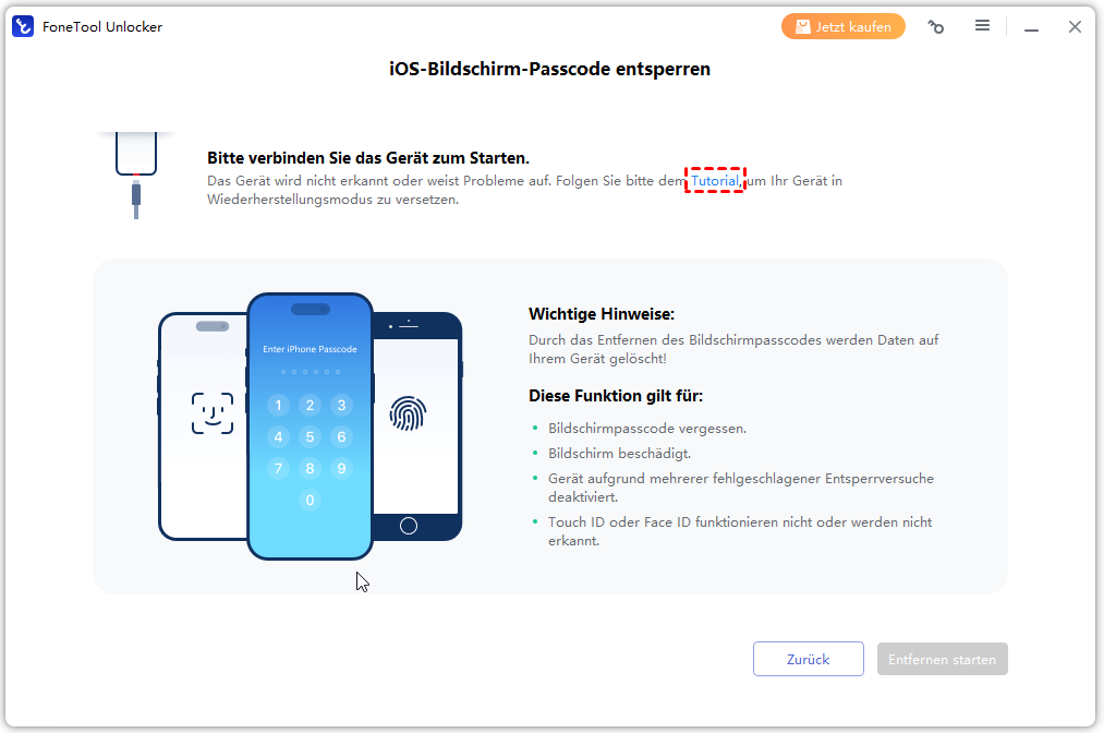 - Alle iOS-Bildschirm-Passcodes entsperren
