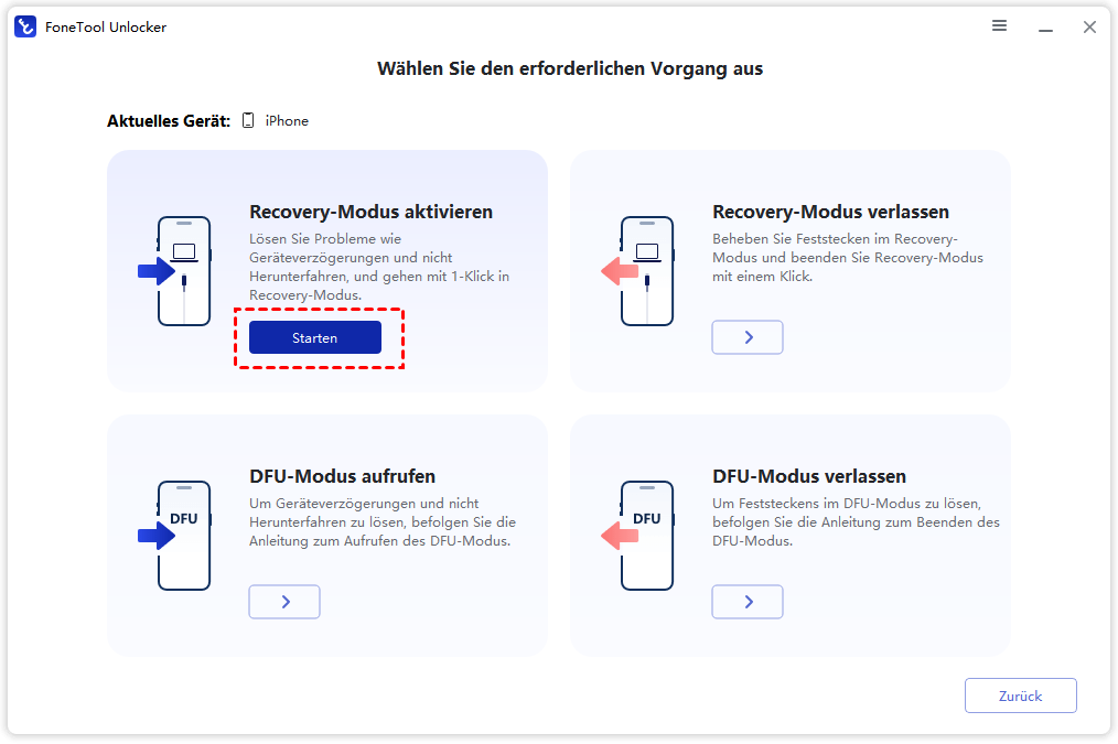 Schritt 6. Um den Wiederherstellungs-/DFU-Modus zu verlassen, wählen Sie die Optionen auf der rechten Seite.