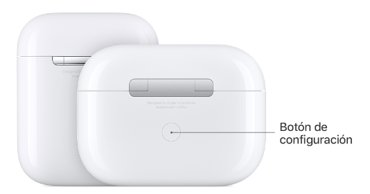 2. Coloque ambos AirPods en el estuche de carga y cierre la tapa > Espere 15 segundos y abra la tapa > Mantenga presionado el botón de configuración en el estuche por hasta 10 segundos > La luz de estado parpadeará en blanco > Sostenga el estuche junto a iPhone > Siga los pasos en pantalla para finalizar la conexión.