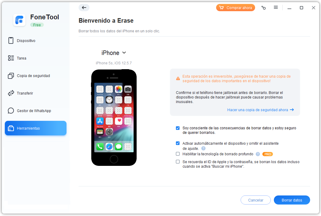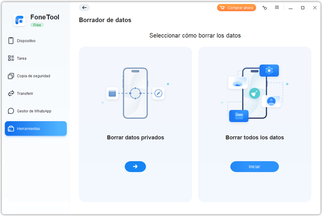 Método 3. Borrar iPhone con un clic a través de FoneTool
