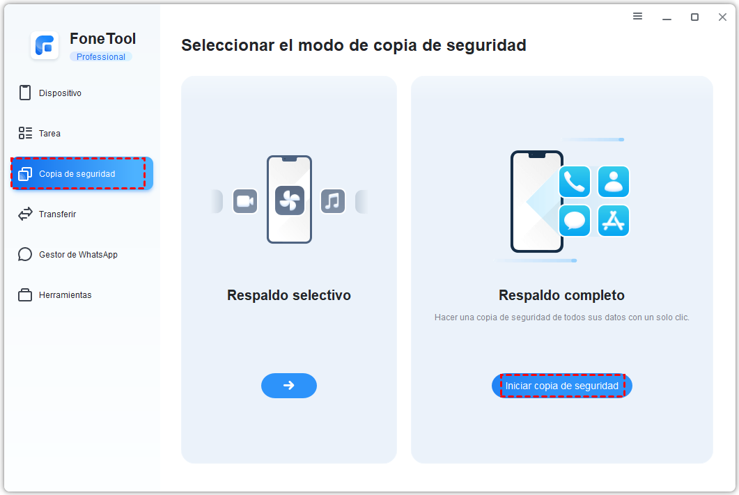 Copia de seguridad de iPhone sin iCloud o iTunes - Copia de seguridad selectiva