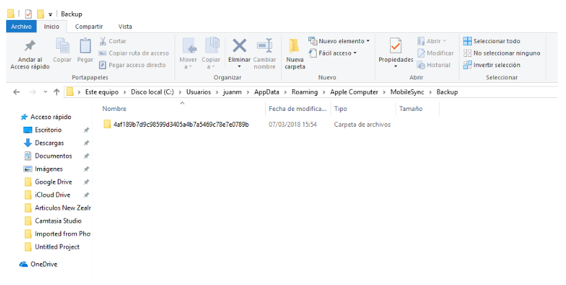 Si usa una computadora con Windows, puede encontrar la copia de seguridad del iPhone en C:\Users\[PC Name]\AppData\Roaming\Apple Computer\MobileSync o C:\Users\[PC Name]\Apple\MobileSync\Backup. Se decide en función de si obtuvo el paquete de instalación de Microsoft Store o del soporte técnico de Apple.