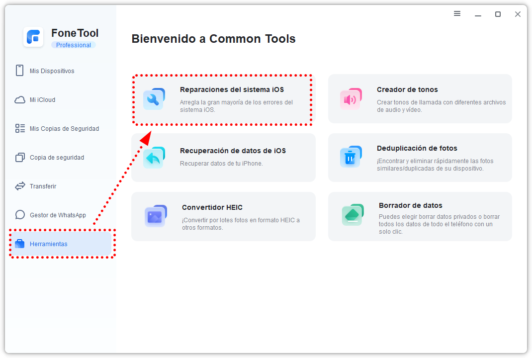 Una de las formas más rápidas y seguras de resolver este problema es usar FoneTool Repair, una herramienta profesional que permite reparar errores del sistema y actualizar tu iPhone sin necesidad de conocimientos técnicos.