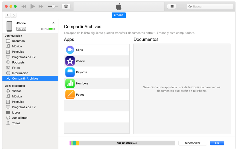 Nota: este método se puede usar para transferir documentos creados por Keynotes, Numbers, Pages u otras aplicaciones que funcionan con File Sharing.