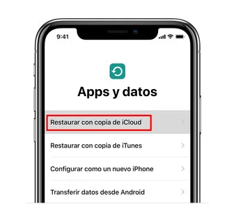 Paso 3. Cuando aparezca la opción "Apps y datos", selecciona "Restaurar desde copia de iCloud".