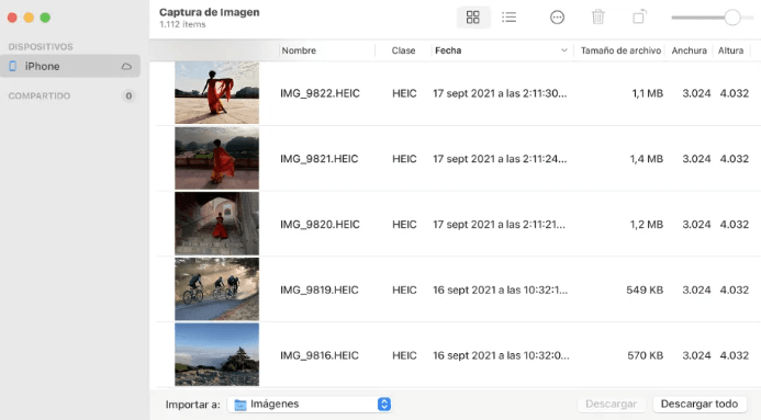 - Captura de Imagen solo transfiere fotos y videos que están físicamente almacenados en el dispositivo. Las imágenes guardadas en iCloud, pero no descargadas en el iPhone, no se mostrarán.