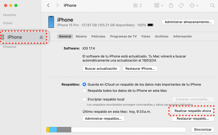 Paso 3. En la sección “Resumen”, haz clic en “Realizar respaldo ahora”. Esto creará una copia de seguridad completa del iPhone en tu computadora.