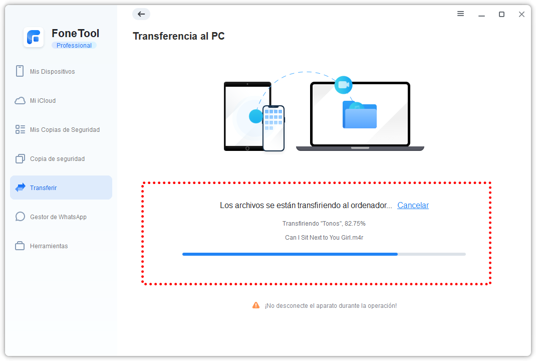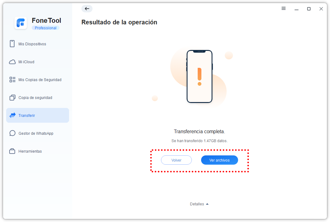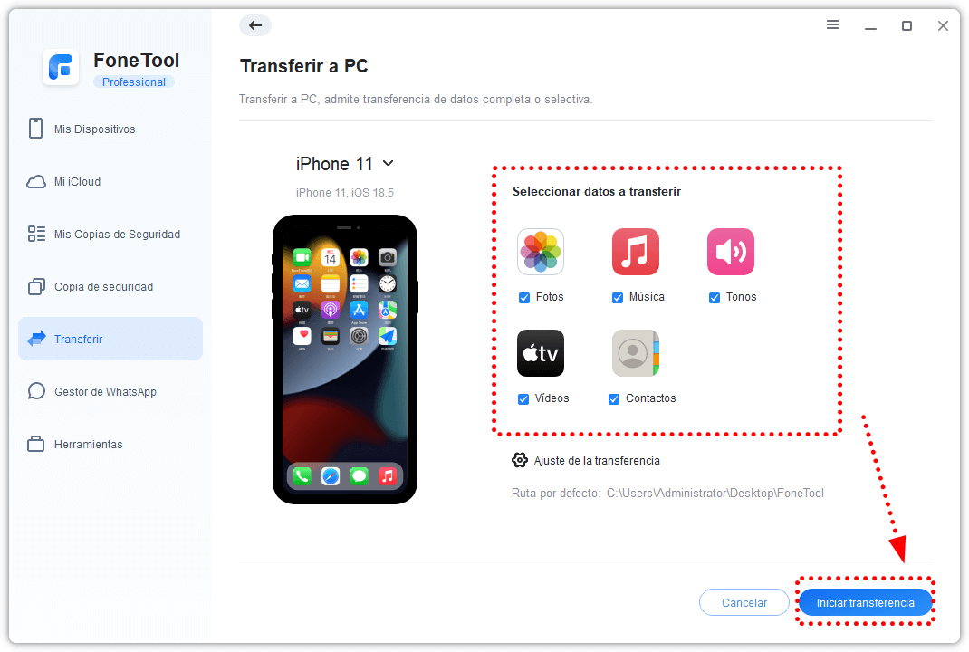 Si necesitas transferir otros datos de iPhone (entre dos iPhones, o desde un iPhone a una computadora o disco duro externo, etc.), te recomiendo que uses FoneTool. Además de hacer copias de seguridad y transferir rápidamente datos de iOS, FoneTool también puede ayudar a recuperar archivos perdidos y reparar problemas del sistema iOS.