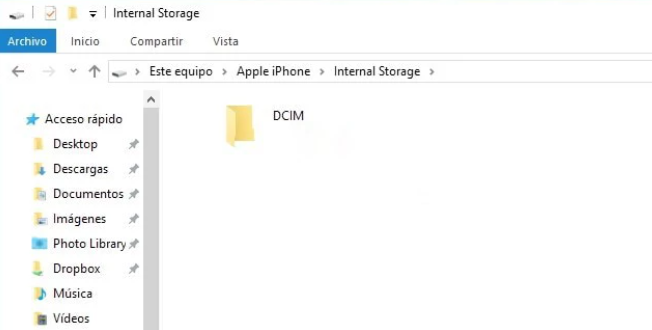 Paso 4. Navega a la carpeta DCIM, donde se almacenan las fotos y videos. Copia y pega los archivos deseados en una carpeta de tu PC. Así conservarás la calidad original sin compresión.