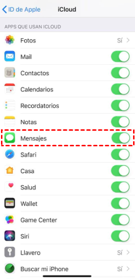 4. Sincronice mensajes con la cuenta B: vaya a Configuración > [su nombre] > iCloud para activar Mensajes.