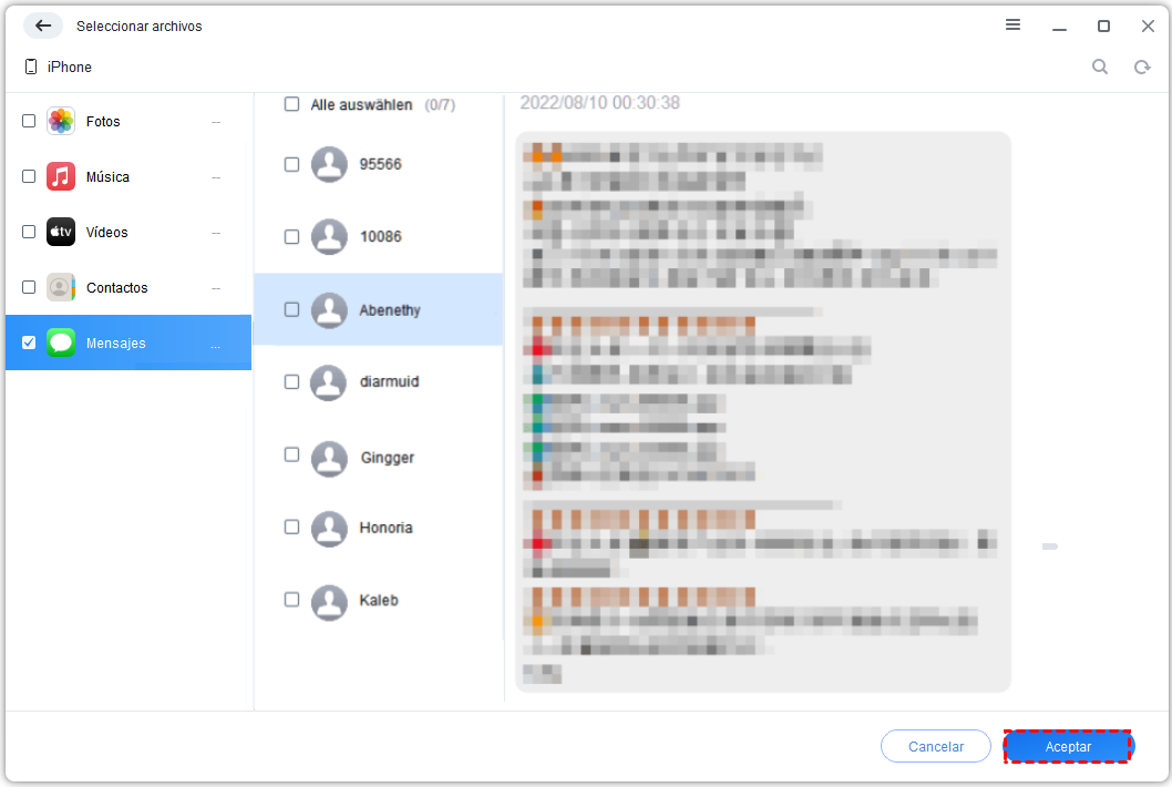 Parte 2. Transferir mensajes/iMessages de iPhone a otro