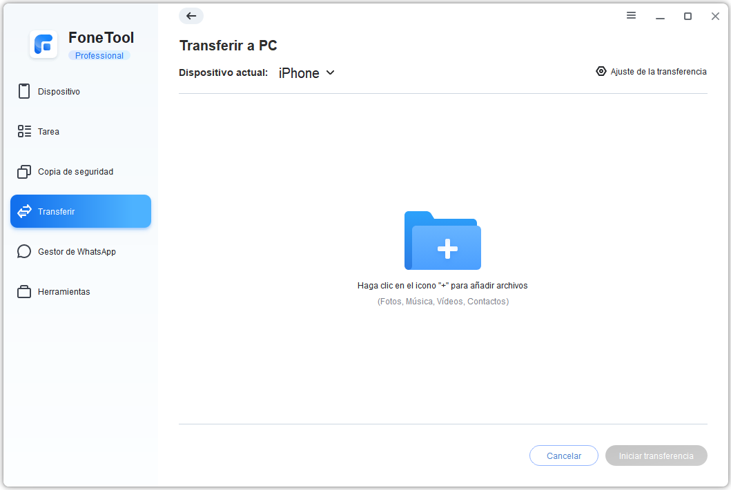 Paso 1. Descarga FoneTool haciendo clic en el botón de abajo. Conecte su iPhone a la computadora con un cable USB.
