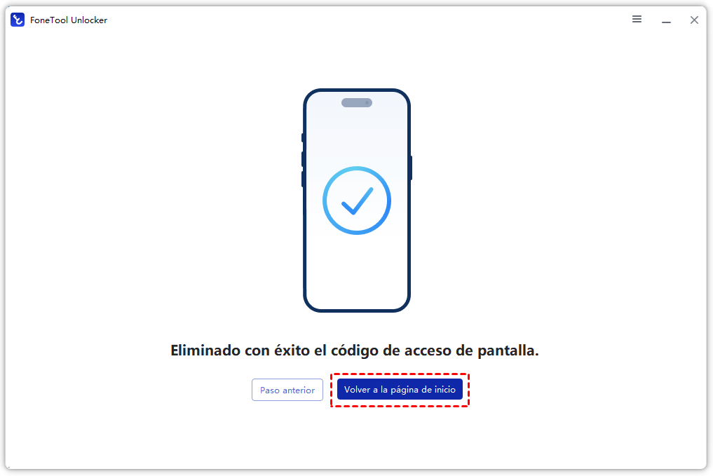 Paso 3. Y tu iPhone se desbloquea con éxito con FoneTool Unlocker. Luego puedes establecer el dispositivo a tu gusto y establecer una contraseña nueva.