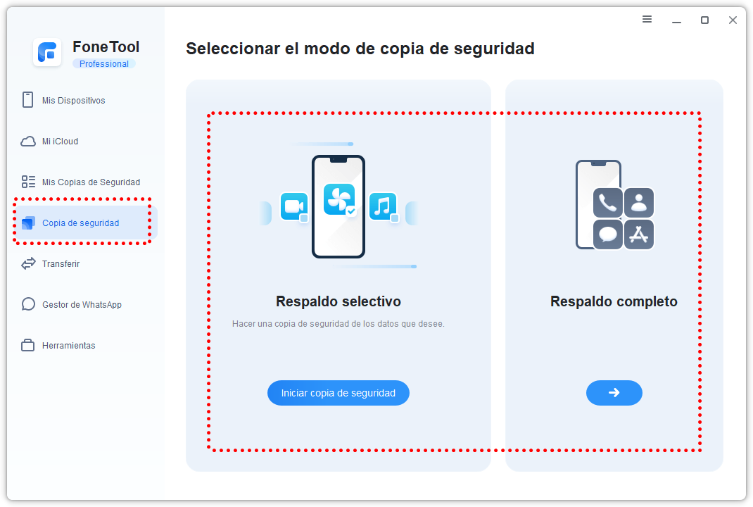 - FoneTool: Esta herramienta profesional permite crear una copia de seguridad rápida y selectiva de tus fotos, contactos, mensajes y otros datos, incluso si iTunes no reconoce el dispositivo.