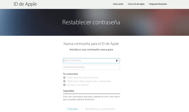 Pasos para restablecer la contraseña del Apple ID: