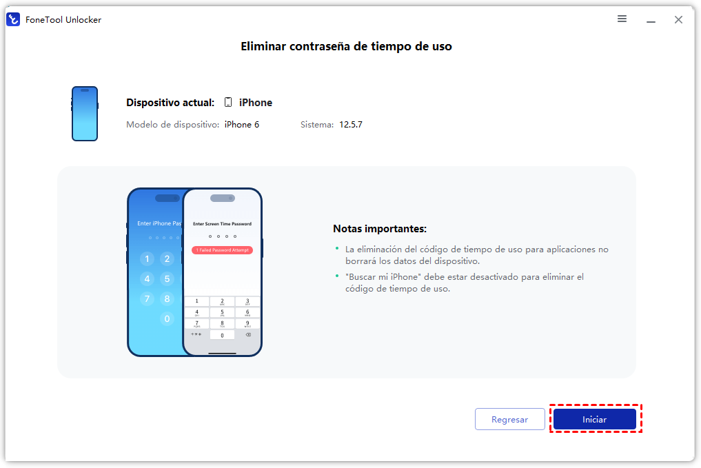 Si tu iPhone no puede cerrar sesión debido a restricciones y además olvidaste el código de Tiempo de uso, la mejor alternativa es usar una herramienta profesional como FoneTool Unlocker. Este software está diseñado para eliminar bloqueos de manera segura y sin pérdida de datos, incluyendo el código de Tiempo en Pantalla. De esta forma, podrás quitar las restricciones sin necesidad de contraseña y recuperar el control total de tu dispositivo.