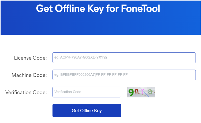 Paso 2. Introduzca su código de licencia y el código de la máquina (cópielo de la ventana de registro offline) en la página web de apertura para obtener una clave offline.