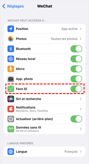 Solution 3. Activer l'autorisation de Face ID pour les applications tierces