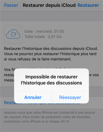 Pourquoi impossible de restaurer l'historique des discussions WhatsApp depuis iCloud ?
