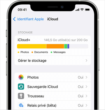 Si vous vous demandez comment accéder à la sauvegarde de WhatsApp sur votre iPhone, vous pouvez vérifier la taille de la sauvegarde WhatsApp sur iCloud en allant dans Réglages de l'iPhone > Appuyez sur [votre nom] > iCloud > Choisissez Gérer le stockage > À partir de là, vous pouvez localiser les messagers WhatsApp et la taille de la sauvegarde WhatsApp.