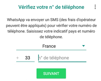 WhatsApp a besoin de votre numéro de téléphone et un code de vérification sera envoyé au numéro ajouté sous forme de SMS.