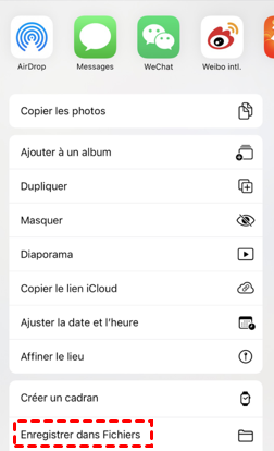 Étape 3. Enfin, sélectionnez Enregistrer dans Fichiers dans la fenêtre contextuelle pour l'enregistrer dans l'application Fichiers de votre iPhone.