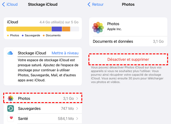 2# Supprimer toutes les photos iCloud mais pas iPhone - Désactiver et supprimer Photos iCloud