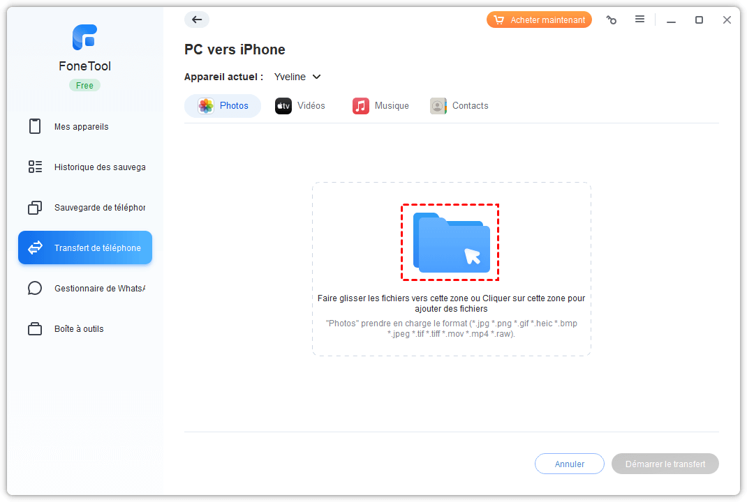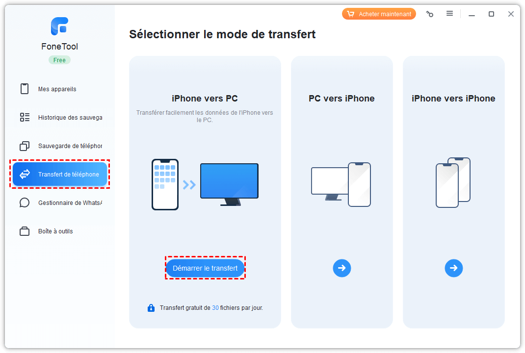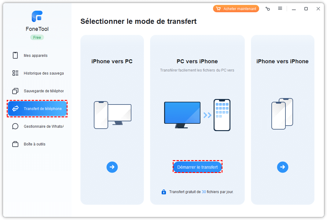 Votre iPhone est plein de photos, de musique, de logiciels et de données ? Vous pouvez régulièrement transférer des fichiers de l'iPhone vers le PC pour libérer de l'espace de stockage avec l'application de transfert iPhone simple, et faire une sauvegarde de toutes vos données sur l'ordinateur.