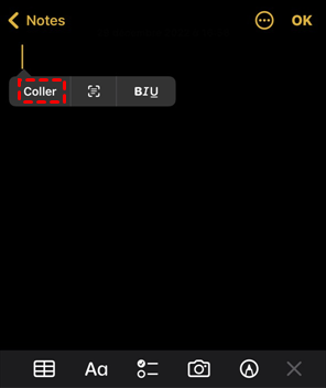 Étape 3. Exécutez l'application Notes > commencez une nouvelle note. Touchez et maintenez une zone vide, puis sélectionnez Coller.