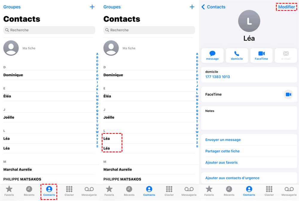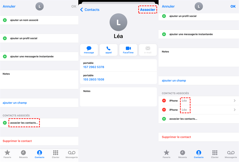 Étape 6. Vous pouvez alors voir les contacts liés ici. Enfin, vous pouvez voir que les informations des deux « Léa » ont été fusionnées en un seul contact.