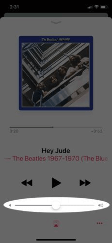 Vous pouvez également régler le volume dans une application particulière qui lit de la musique ou des vidéos, etc. Prenons l'exemple de l'application Musique. Comme vous pouvez le voir dans l'image suivante, près du bas de l'écran, un curseur horizontal vous permet de régler le volume de la musique que vous écoutez.
