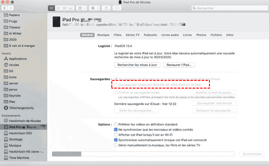Comment sauvegarder iPad sur disque dur externe par Finder sur Mac