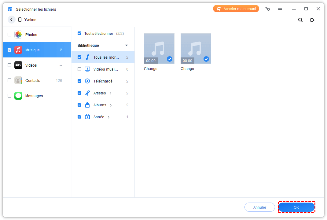 Étape 3. Vous pouvez choisir une icône pour décider ce que vous souhaitez sauvegarder > Cliquez sur OK pour continuer.