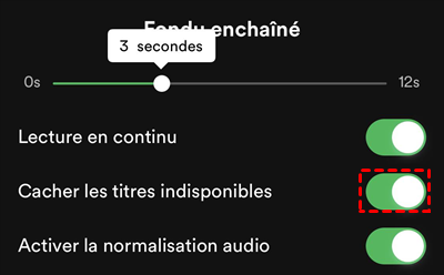 Spotify propose une option pour supprimer les titres indisponibles dans Spotify. Ainsi, vos titres peuvent être reconnus par Spotify comme injouables. Vous pouvez suivre le guide pour désactiver cette fonctionnalité.