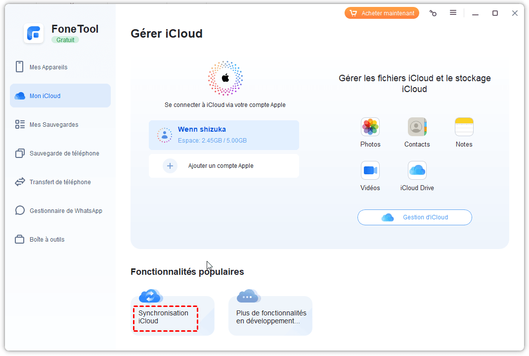Lorsqu'il s'agit de synchroniser les données d'un compte iCloud avec un autre compte, l'application de gestion de données iCloud tout-en-un - FoneTool sera le moyen le plus utile d'accomplir cette tâche.