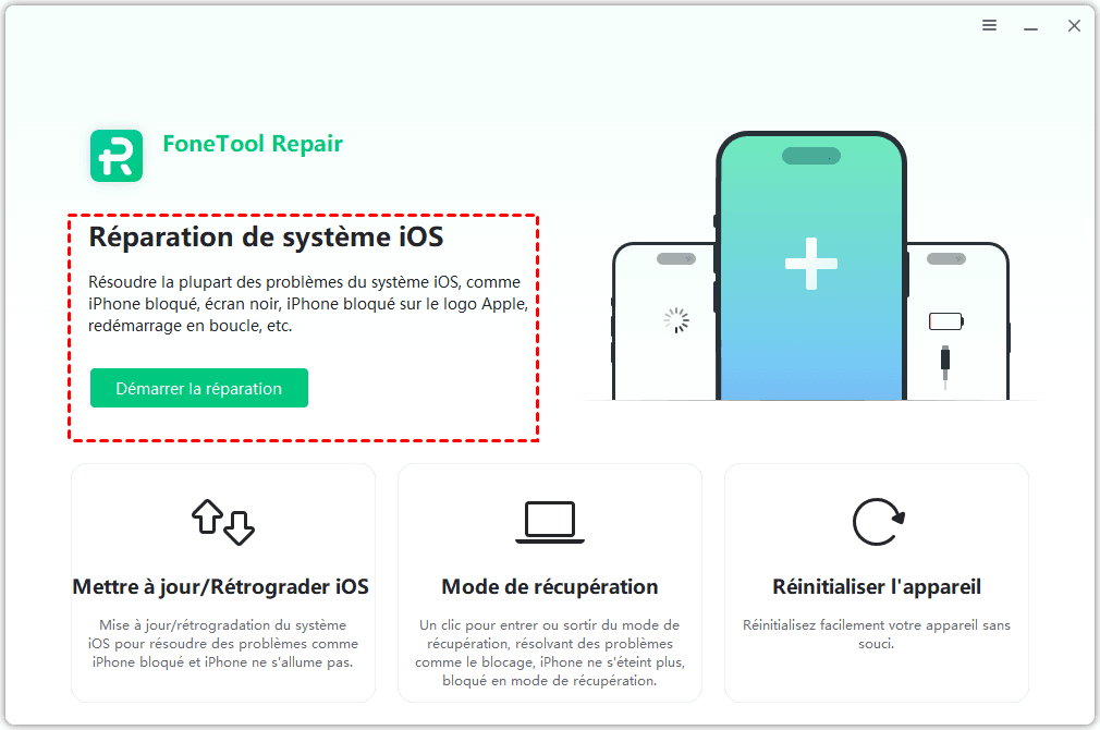 Si le redémarrage forcé ne vous a pas aidé à résoudre le problème d'iPhone gelé pendant la mise à jour, vous pouvez utiliser un outil de Réparation système iOS professionnel pour résoudre le problème - FoneTool Repair.