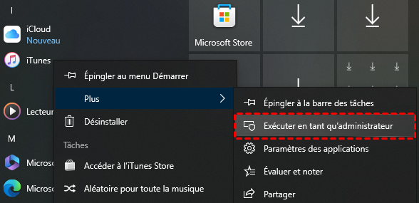 Ensuite, vous devez accorder les droits d'administrateur à iTunes. Cliquez avec le bouton droit de la souris sur iTunes et sélectionnez Exécuter en tant qu'administrateur.