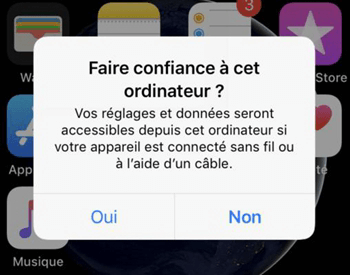 Après avoir connecté votre iPhone à votre PC, vous pouvez voir une notification : Faire confiance à l'ordinateur ? Veuillez cliquer sur le bouton Oui, et votre iPhone recevra un signal vert indiquant que la connexion est sécurisée. Sinon, les fichiers ne peuvent pas être transférés simplement par une connexion physique.