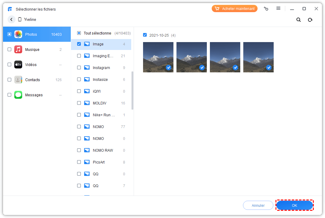 Étape 3. Choisissez les fichiers que vous souhaitez sauvegarder > cliquez sur OK pour continuer.