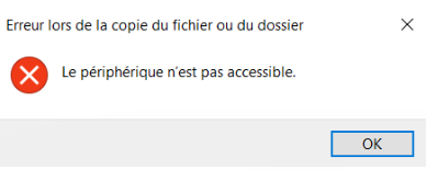J'ai besoin de copier des photos de la pellicule de l'iPhone 8, mais les choses ne vont pas bien. Lorsque je connecte l'iPhone à l'ordinateur et que je copie le dossier DCIM de l'iPhone 8 vers le PC, une fenêtre contextuelle indique Erreur 0x80070141 : l'appareil est inaccessible. Comment puis-je résoudre ce problème ?