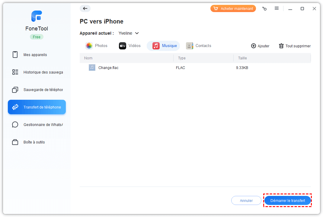 Ici, FoneTool est fortement recommandé pour vous. Il vous fournit un moyen facile et rapide de transférer des fichiers FLAC vers iPhone sans iTunes.