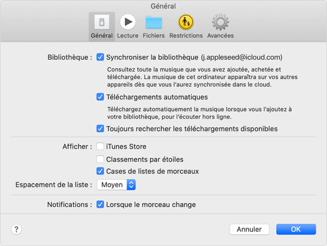 > Activer la bibliothèque musicale iCloud