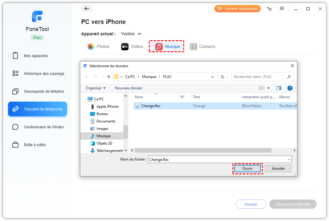 Étapes pour transférer la musique de l'ordinateur à l'iPhone avec FoneTool :